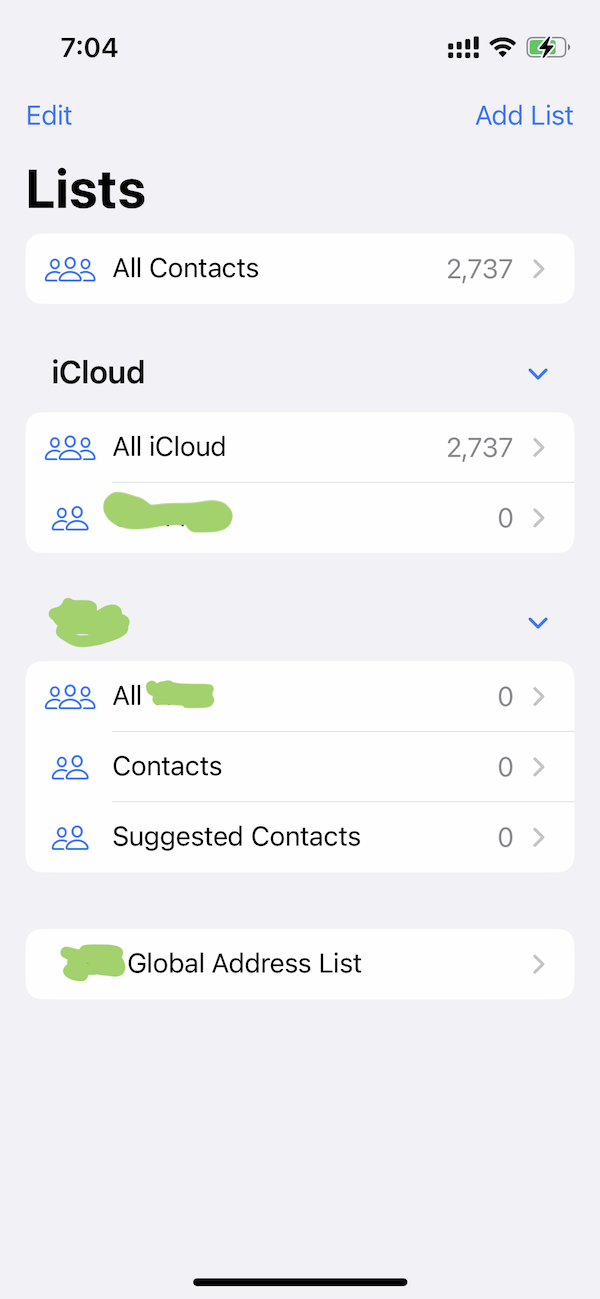On my iPhone, in Settings, I've added my company Exchange account. Consequently, within the Contacts app, 4 new lists appear - the bottom as shown in the attached image.
