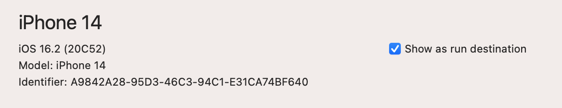 I'm running Xcode 14.2 and I can't get any simulators to show up as a build target. When I go to the Devices and Simulators menu and click on Simulators, I set up a simulator and set Show as run destination as true. How do I get this simulator to show up as a build target?
