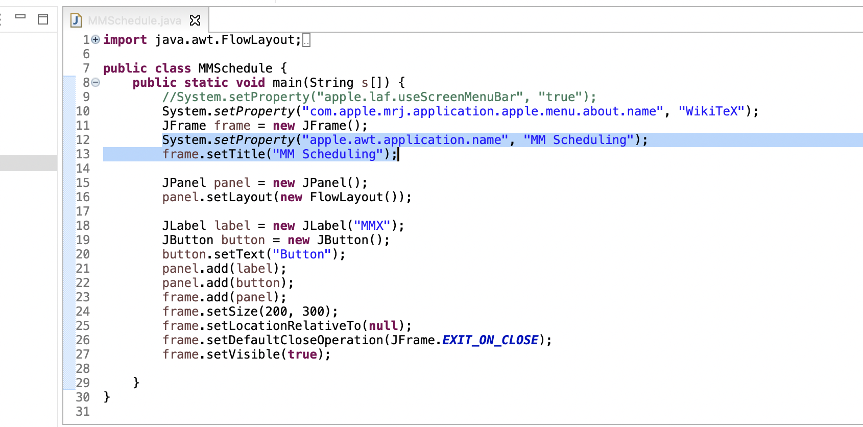 System.setProperty("apple.awt.application.name", "MM Scheduling");