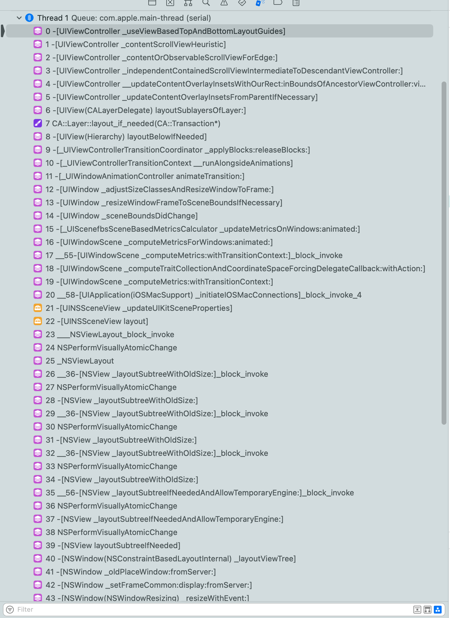 The app may become unresponsive when dragging the right edge of the window quickly. The stack trace is pasted below.
