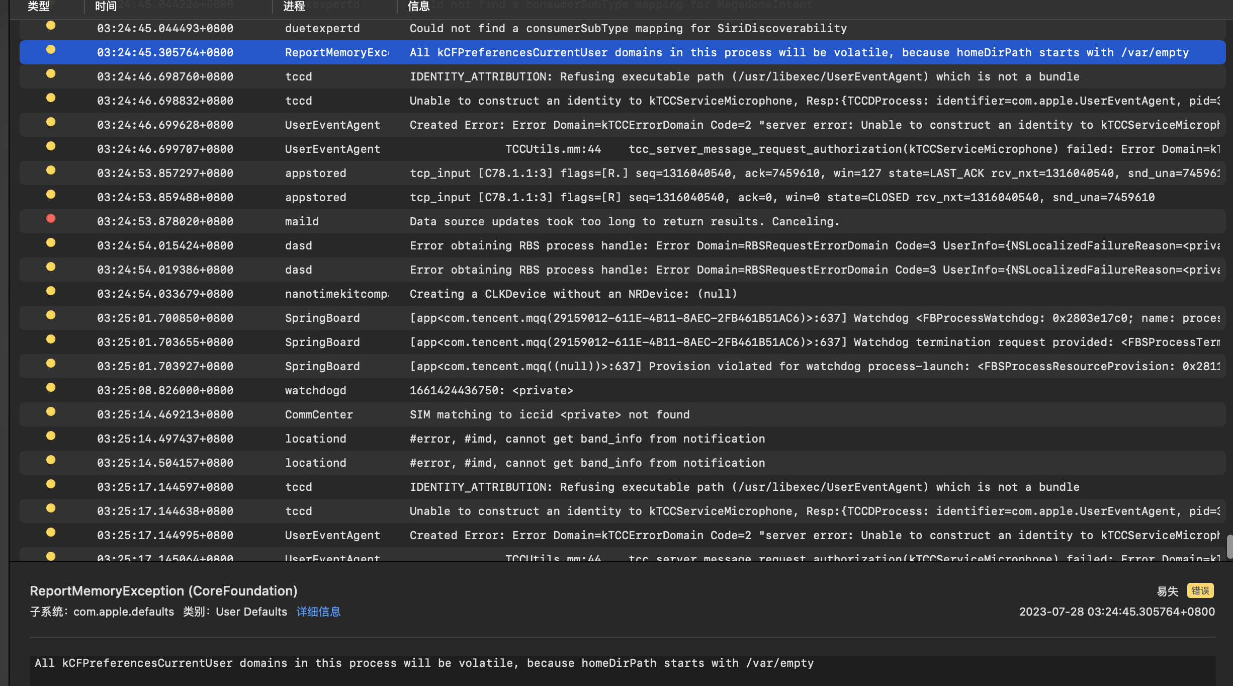 Shortly after updating from iOS16.5 to iOS17 Beta4, my phone started freezing and would die within minutes of every boot. I recorded some logs (maybe no useful information in screenshots)