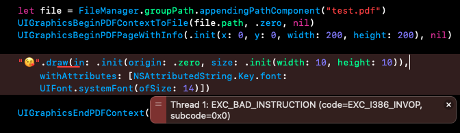 "😘".draw(in: .init(origin: .zero, size: .init(width: 10, height: 10)), withAttributes: [NSAttributedString.Key.font: UIFont.systemFont(ofSize: 14)])