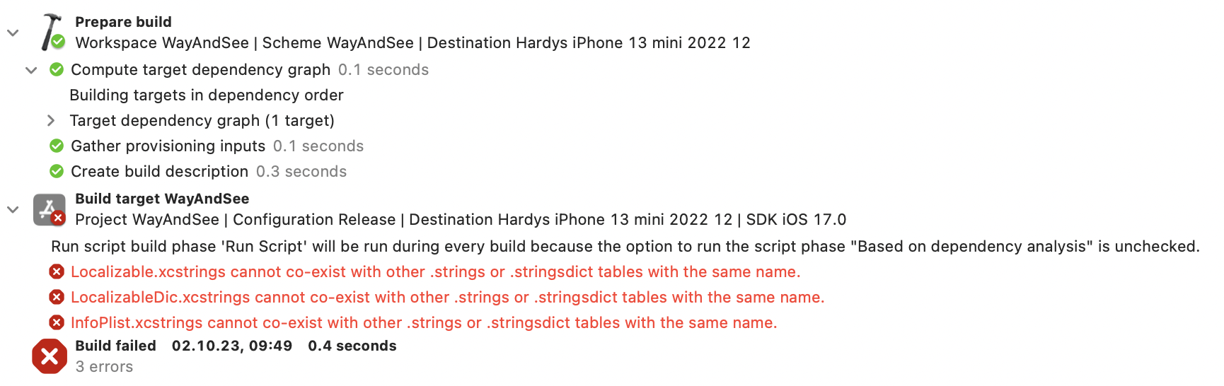 InfoPlist.xcstrings cannot co-exist with other strings or stringsdict tables with the same name.