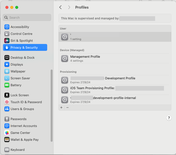The code works fine on MacOS 13 and below. However, on MacOS 14 Sonoma, instead of "Profiles" pane, the "Privacy & Security" pane opened.