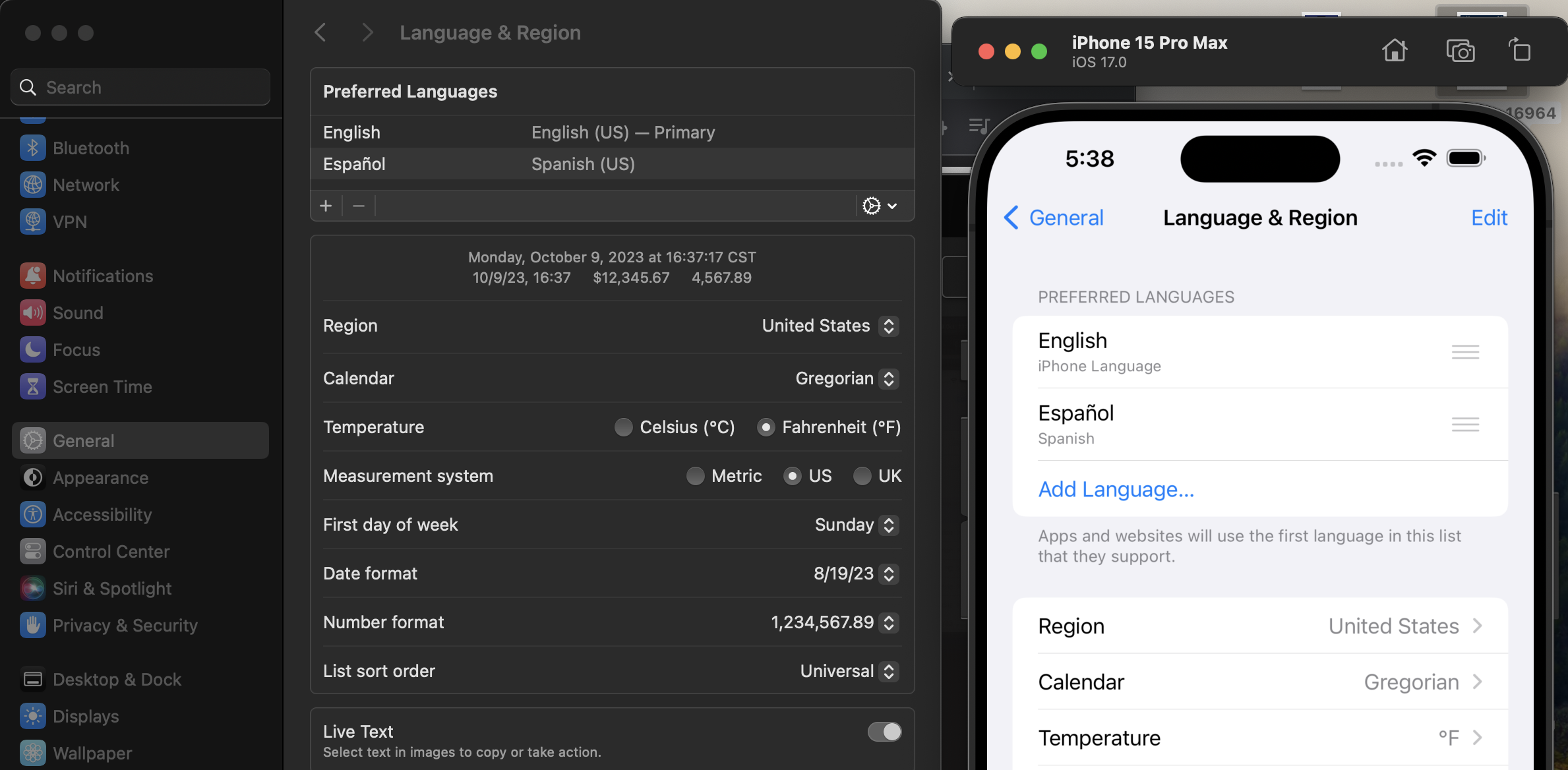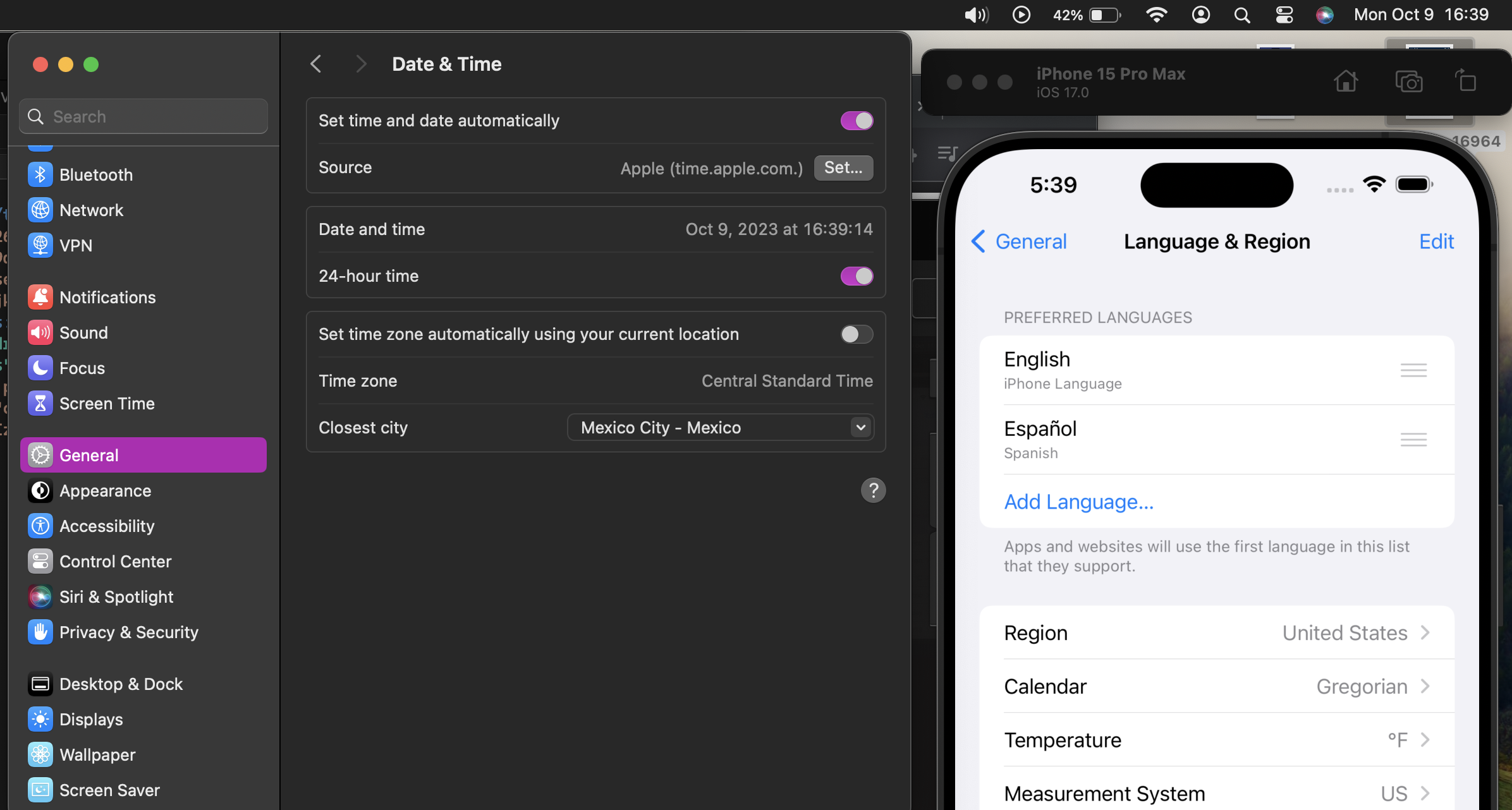 Xcode 15 simulator not matching mac time