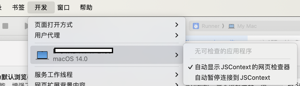 sonoma 14.0 safari 17 developer tools JSContext, cannot debug desktop webAPPs. Anyone know how to set it up?