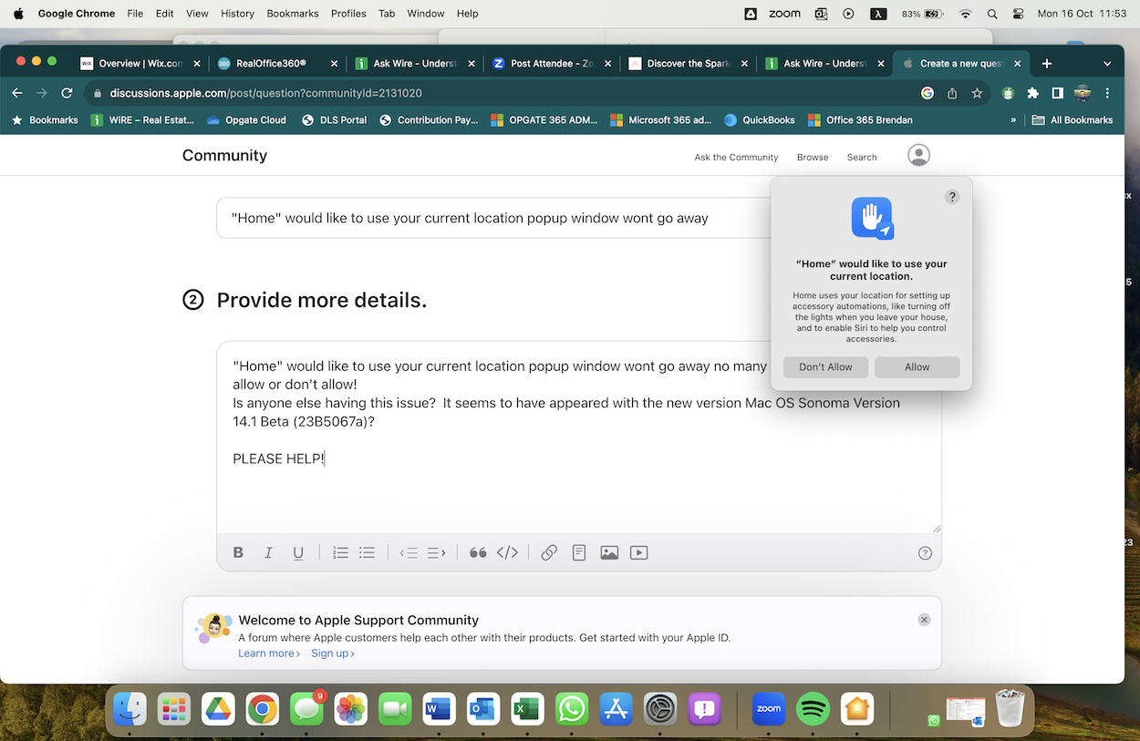 "Home" wants to acces your location popup window won't go away