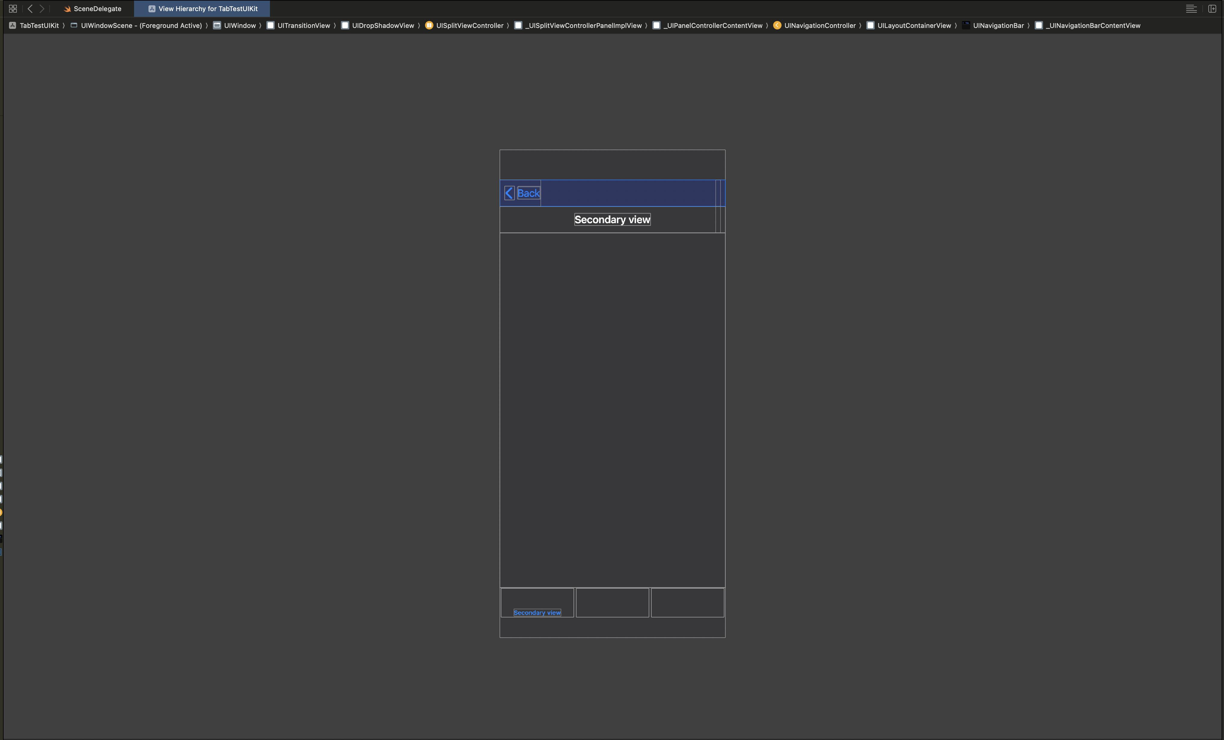 tabBar.viewControllers = [UINavigationController(rootViewController: SecondaryTestUIViewController()),