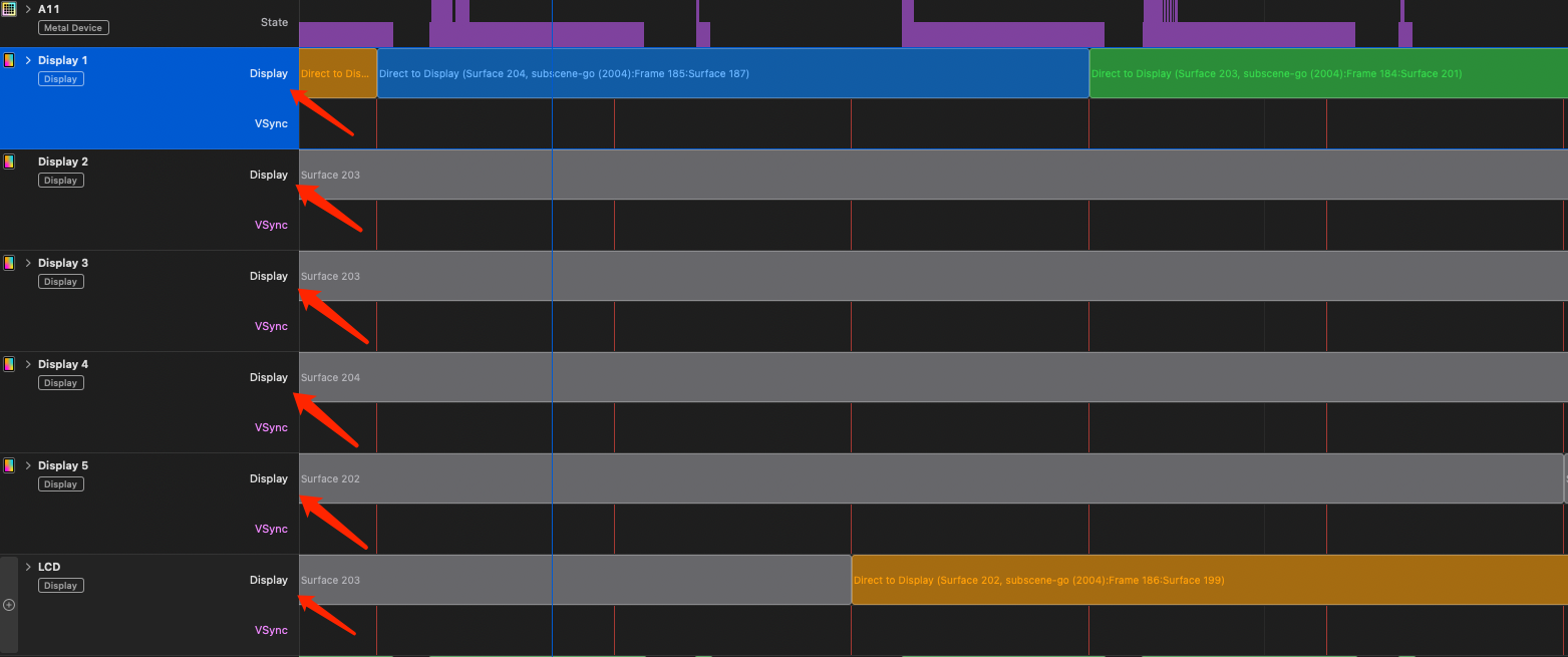 I'm using instrument to profile my metal app, found there are more than one display devices shows on my view, I'm wondering what these display devices mean, thx .
