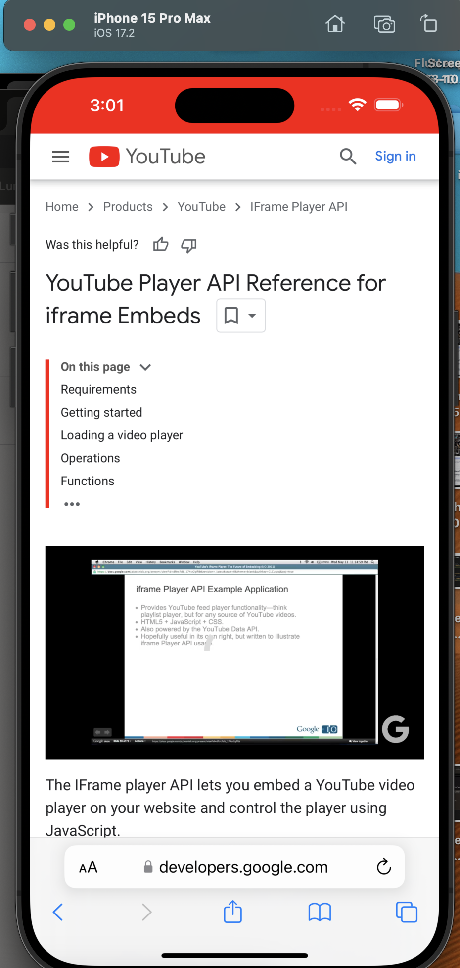 Not Able to Play Embedded Youtube Videos on IOS 17.2 Beta