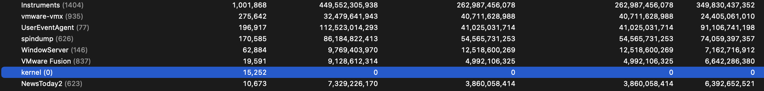 Instruments 15.0.1 on Sonoma 14.1.1 and CORE_ACTIVE_CYCLE kernel always 0