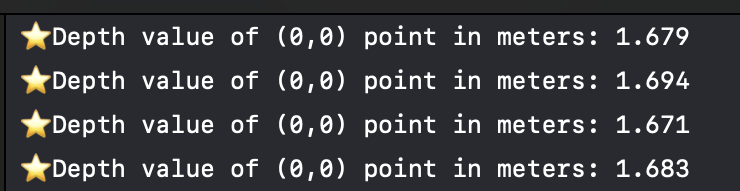 print("⭐️Depth value of (0,0) point in meters: \(depthPoint)")