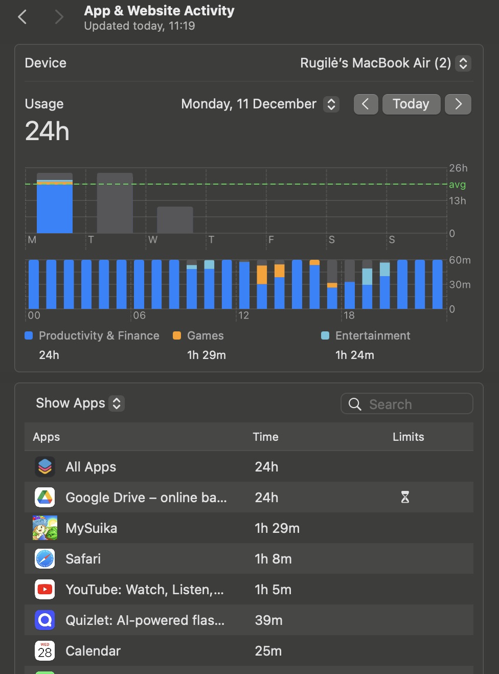 Some websites and apps keep showing up on my screen time even though I don't use them generally. I don't even use Google Drive, but this is the one app that always shows up as 24 hour screen time.