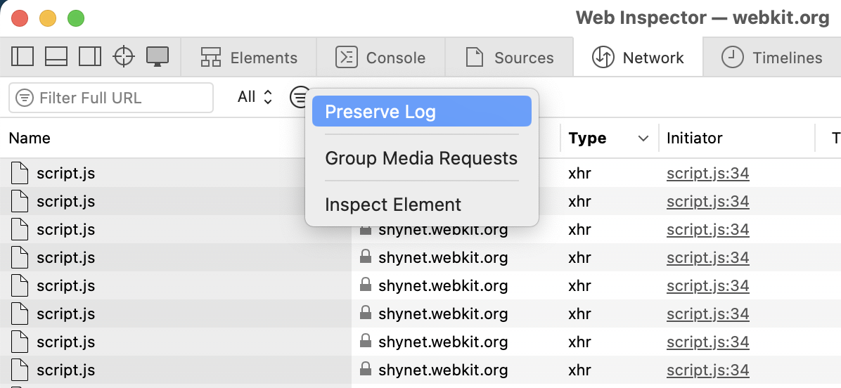 Safari 17.2.1 Preserve Log
