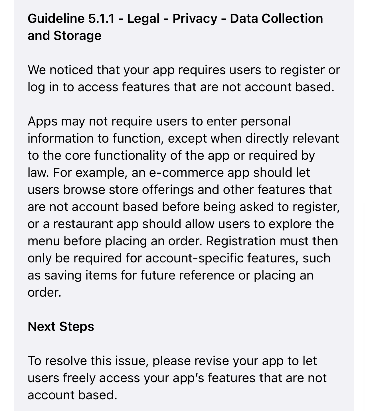 For GUIDELINES 5.1.1: There are too every apps that can registered without specifying or explaining what registration is for, example the apps BADOO and LOVOO and NETFLIX there are only ACCESS, REGISTERED and PASSWORD DISMISSED...Can you help me with this too? Can I see a specific example? A screenshot?