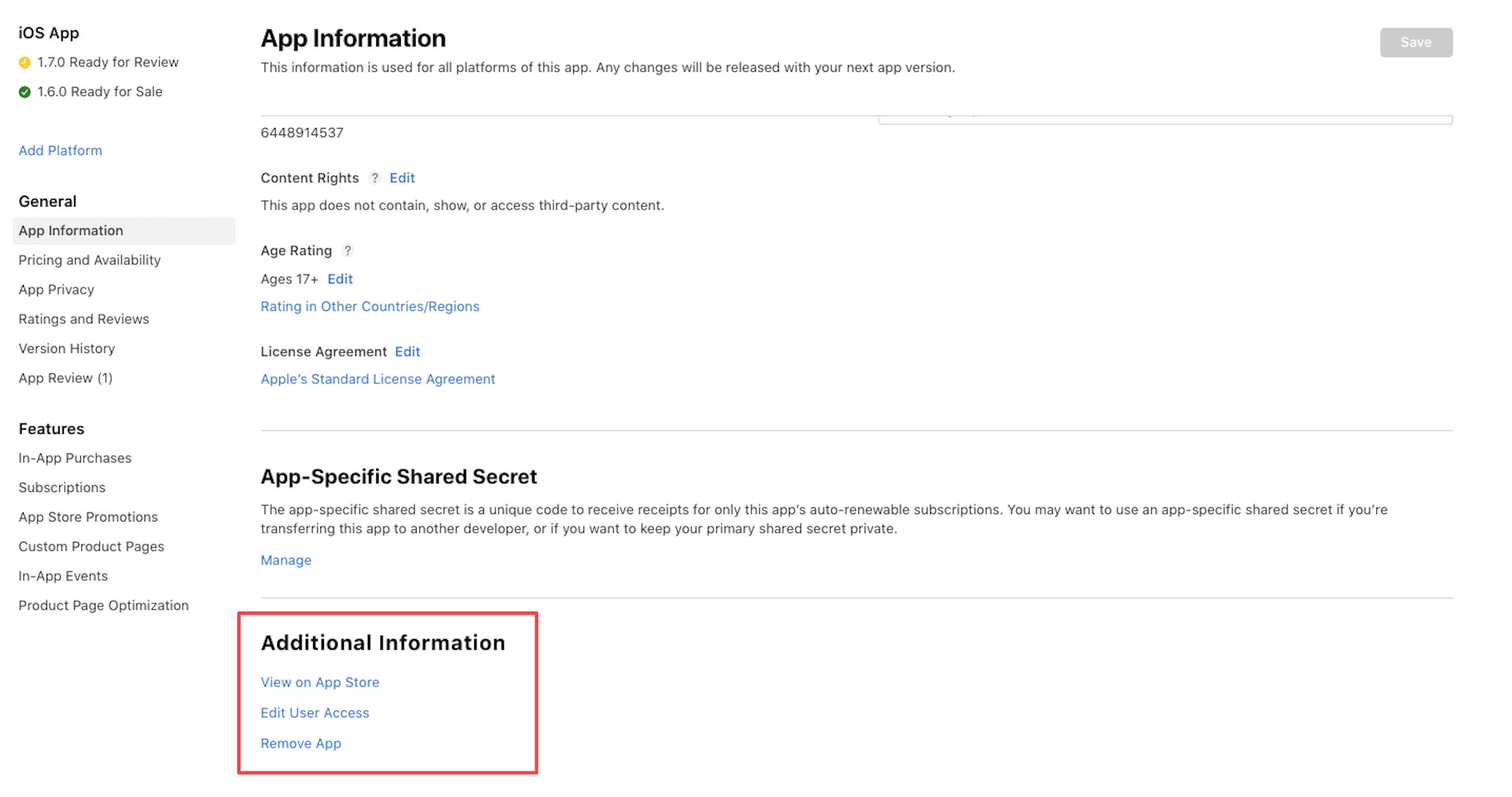 "Transfer App" does not show in Additional Information section.