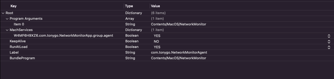 let listener = NSXPCListener.init(machServiceName: "com.tonygo.NetworkMonitorAgent")
