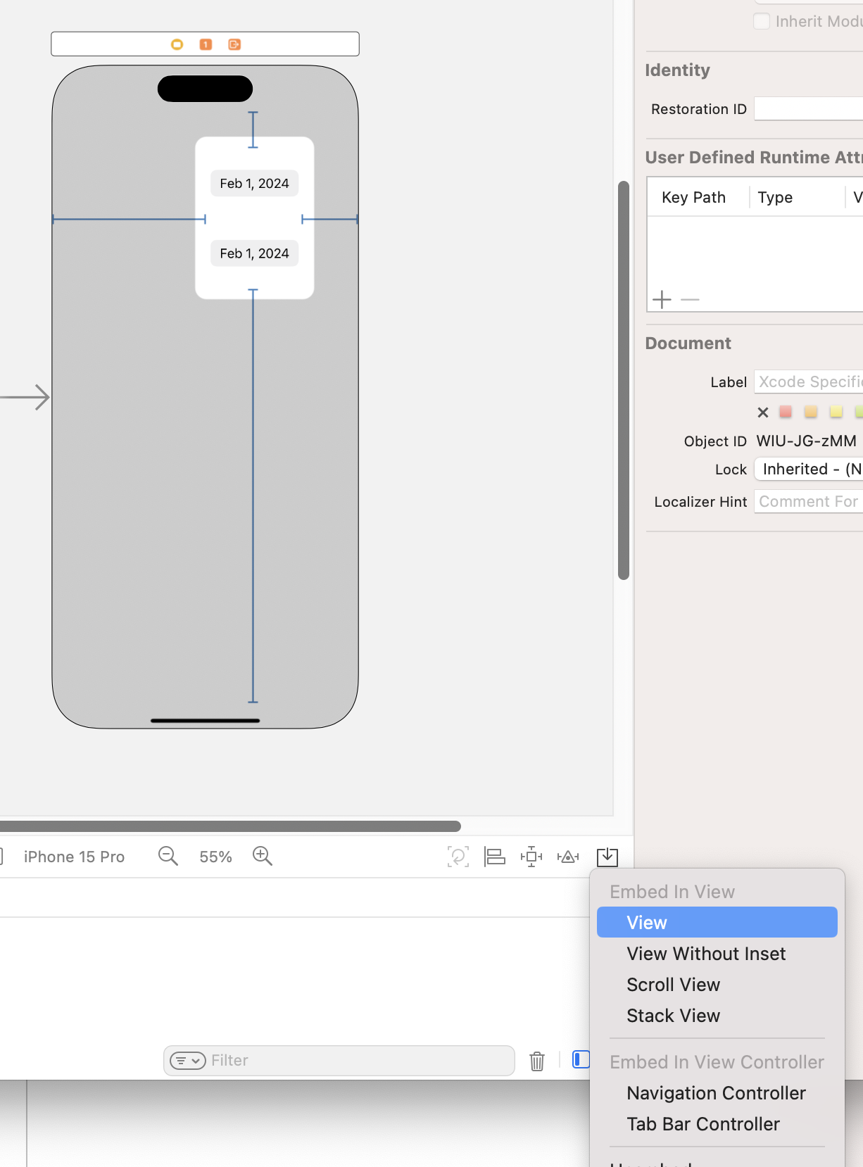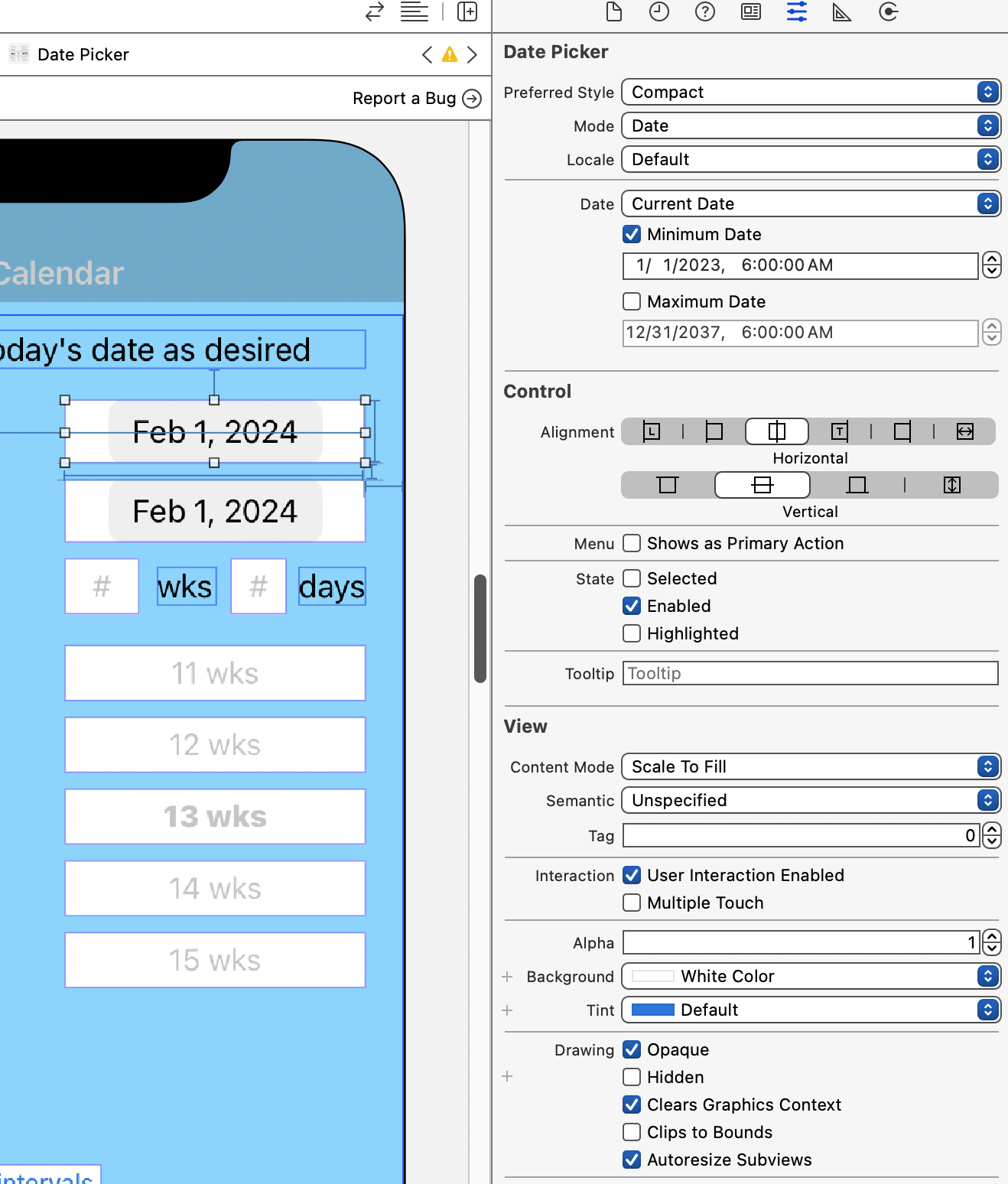 I'm experimenting with the relatively new (to me) compact DatePicker. I'd like a column of aligned fields, the first two on top are date pickers for user input, the ones below that are dates outputted in textfields calculated from dates input by user. In Interface Builder in Xcode, it looks mostly like I want it, black text centered in white rectangular text fields. But in production on my iPhone, the DatePickers are functional, but they are not centered and they appear on a gray background. I haven't been able to figure out what settings to adjust to make the DatePicker's date centered and on white background. Screenshots attached. Grateful for help.