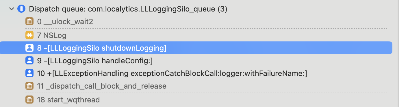 My app has occasionally randomly started hanging. I have extensive logging in it, so you'd think it'd be easy to find out where its hanging (look at the last line logged etc.) However its hanging at different places each time it runs, so its impossible to debug. I've got several .ips files from off the handset, and they're all different.