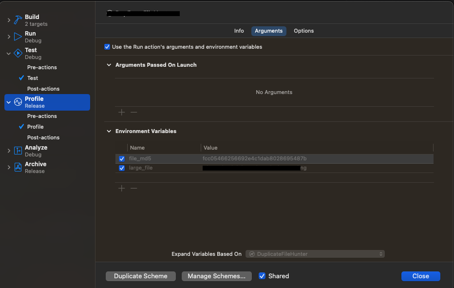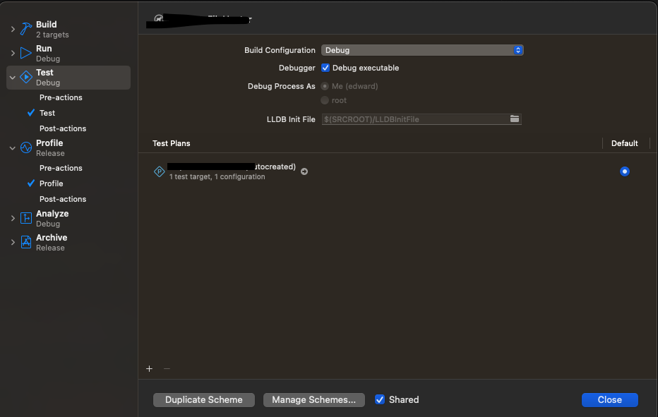 Hi @imneo, in recent versions of Xcode the setting you're referring to — Environment Variables — may be specified via a test plan file, and test plan files are referenced by a scheme's Test action. To customize this setting, first go to the Test action of the scheme, click the arrow next to the test plan in the list to open it in the editor, navigate to the Configurations tab, and edit the Environment Variables setting. If this is the first time you have made edits to the test plan, you may be prompted to save the file to a location in your project.