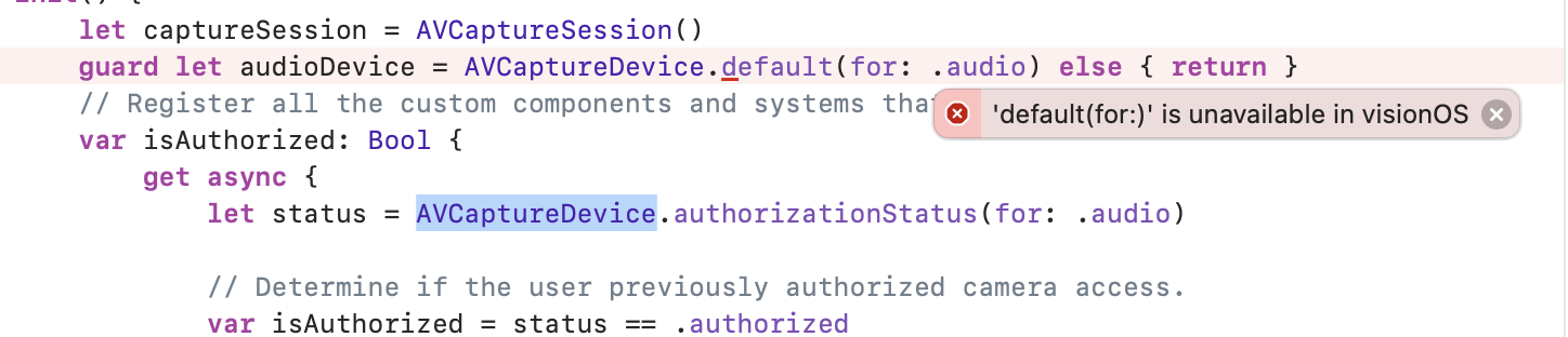 Hi, does anyone know how to capture audio input in vision os? I tried the sample code from official examples https://developer.apple.com/documentation/avfoundation/avcapturesession , but it did work.