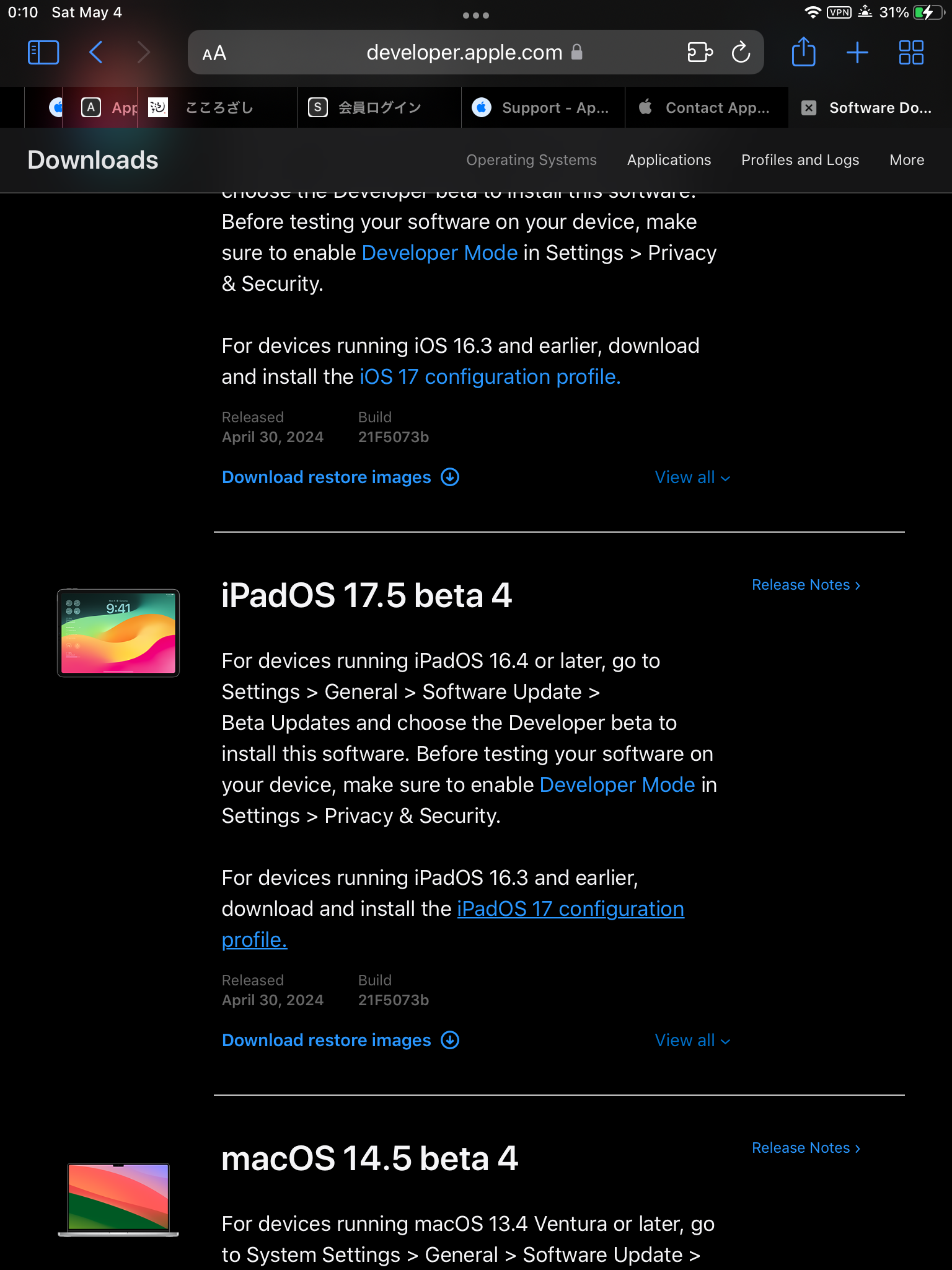 I have a iPad mini4 with iPadOS 15.8.2. I try to Install iPadOS 17.5 beta 4. But I can't succeed in installing the program. I read the documents related to iPadOS 17.5 beta 4 in Apple Developer Program. According to the instructions, I repeated to install the profile to my mini4 by various ways, but in vain. I made inquiries to Apple Care and Apple Developer Support, but they said they gave me some advices that they could have in their resources. They told me my operations seemed to be correct in order to install the profile related to iPadOS 17.5 beta 4 for the machines with iPadOS 16.3 and earlier. They also basically told me they didn't know why and how on a beta program and to go to Developer Forums and post my problem in Developer Forum.
