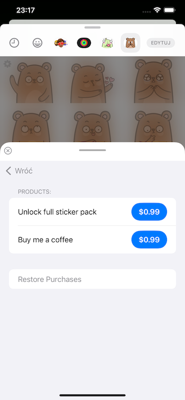 I'm facing a bit of a puzzling issue with the review of my app, particularly with the in-app purchase functionality for message extension/sticker packs. I've implemented the entire store using StoreKit for in-app purchases, using exactly the same code like it is in Apple's demo application (https://developer.apple.com/documentation/storekit/in-app_purchase/implementing_a_store_in_your_app_using_the_storekit_api).