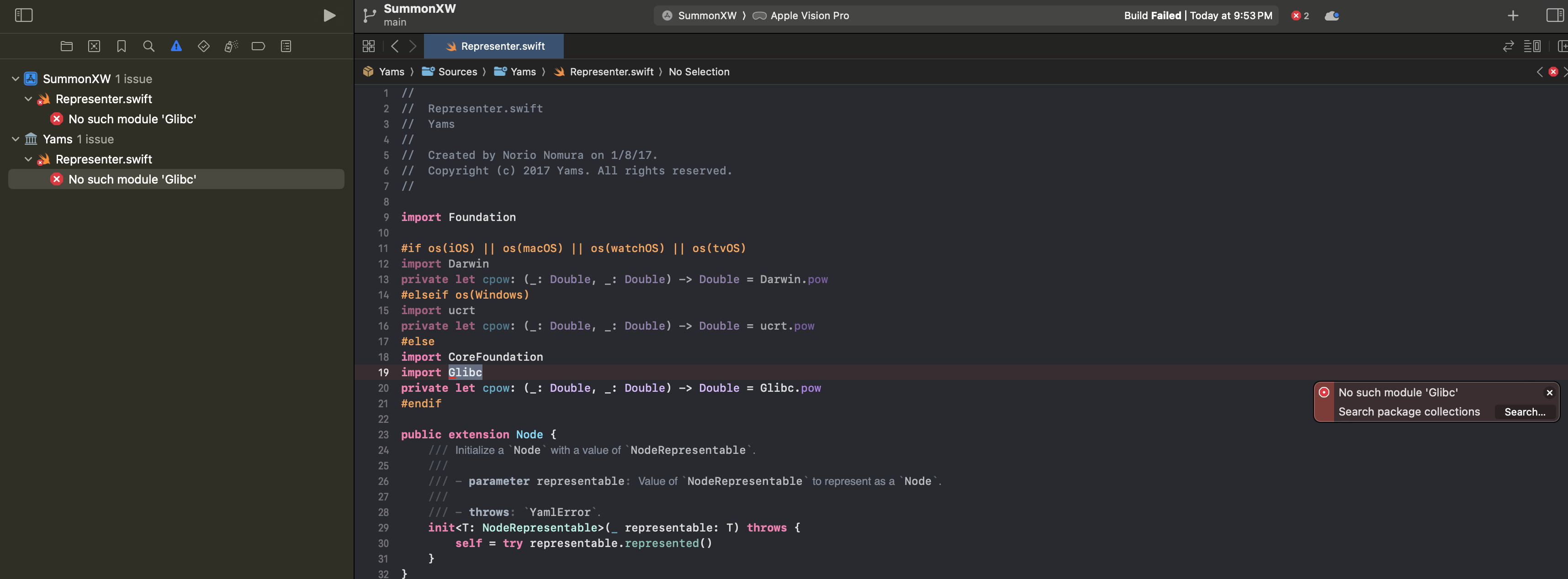 Glibc is the system C standard library on Linux. It’s roughly equivalent to Darwin on Apple platforms. In the screen shot you posted it seems that there’s conditional code that imports Darwin on Apple platforms, except that it’s not aware of visionOS.