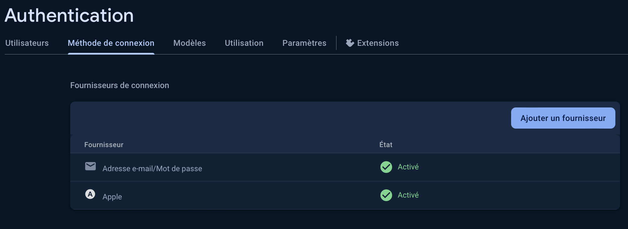 To do this I added Apple as a “Connection Provider” in the Firebase console settings.