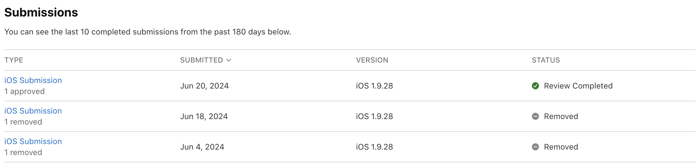 Example of review times for app (1395997293) version 1.9.28