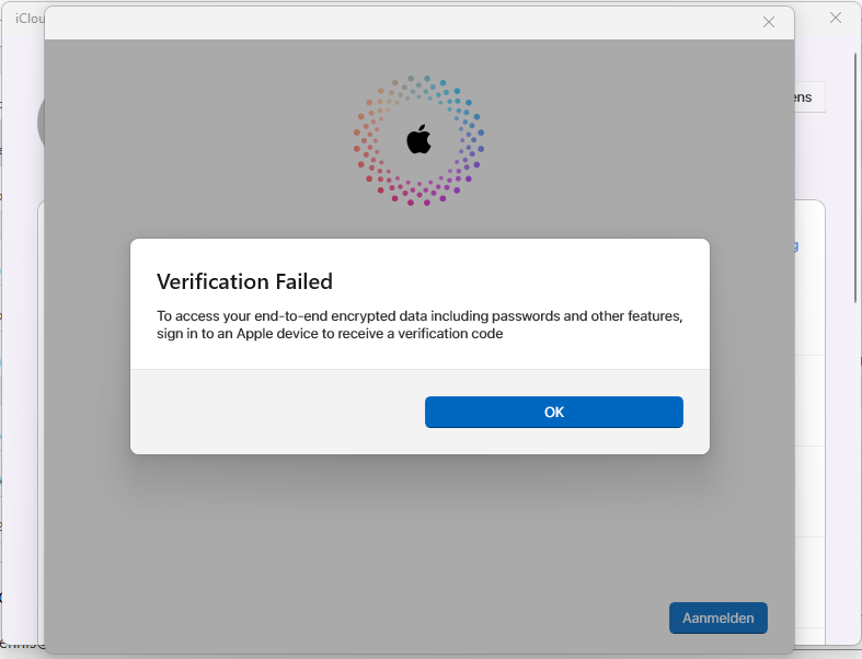 I'm struggling to sign in to Icloud, its linked to my PC. I cannot access other applications on the PC until I sort out the password issue.I have reset the password on MAC, but there is a ''verification failed notification. To access your end-to-end encrypted data, including passwords and other features, sign in to an Apple device to receive a verification code. '' But upon clicking ''OK,'' it takes you back to sign in and won't let you go past this dialogue box. It's taken me over an hour to follow all the instructions-not helping