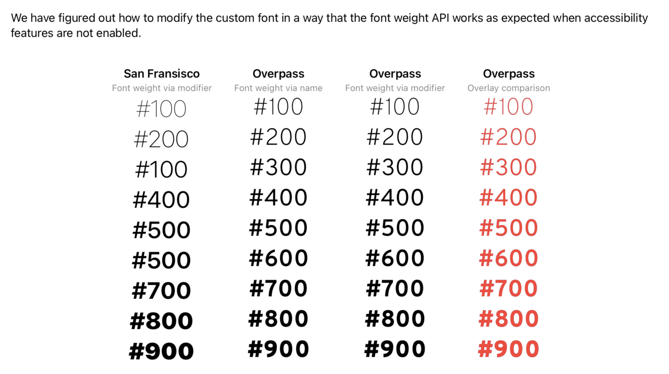 .fontWeight(...)modifier expects. This was done with Typelight. - The font weight value (100/200/300) was modified so that the underlying weight value matches the value the