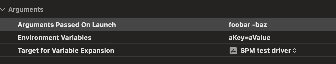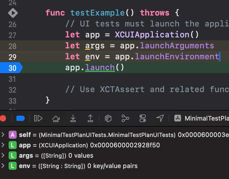 - test plan configures launch arguments and Environment variables in the shared settings "Arguments passed on launch"