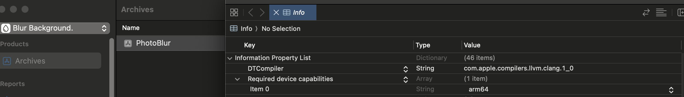 To resolve this issue, check the UIRequiredDeviceCapabilities key to verify that it contains only the attributes required for the app features or the attributes that must not be present on the device. Attributes specified by a dictionary should be set to true if they are required and false if they must not be present on the device.