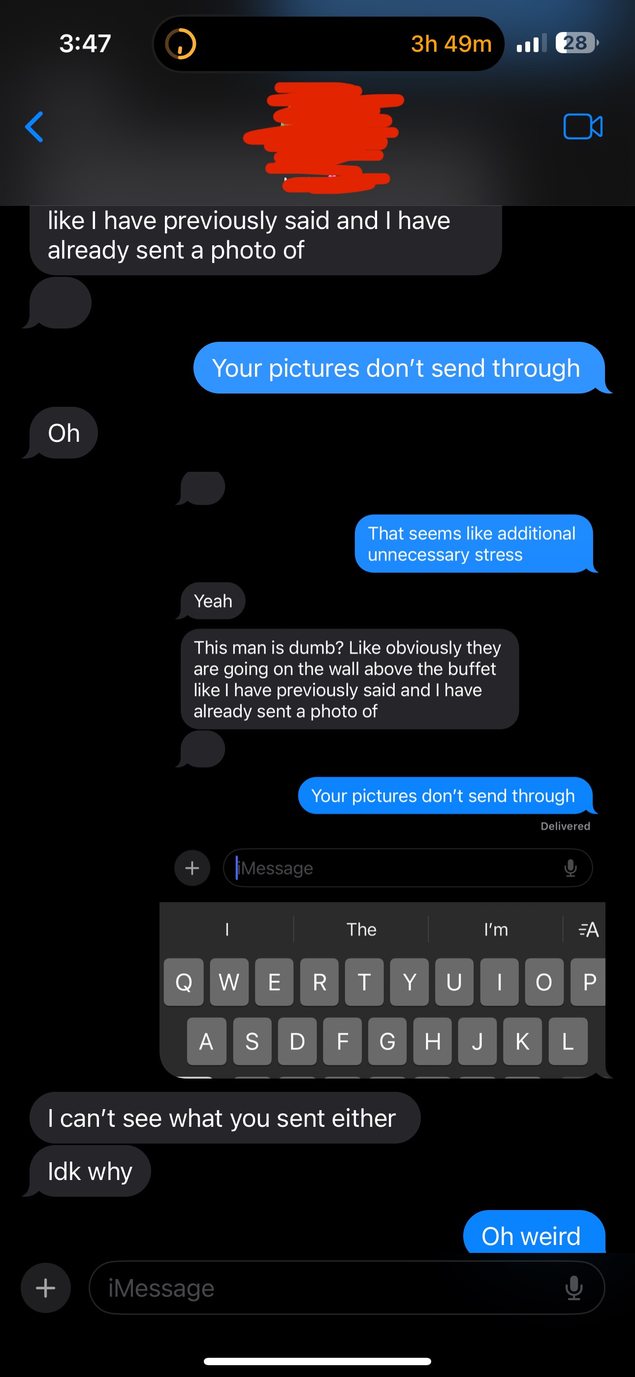 today my wife sent two screenshots and they both appeared as blank little bubbles (image attached), which my wife then also said she was unable to see images from me.