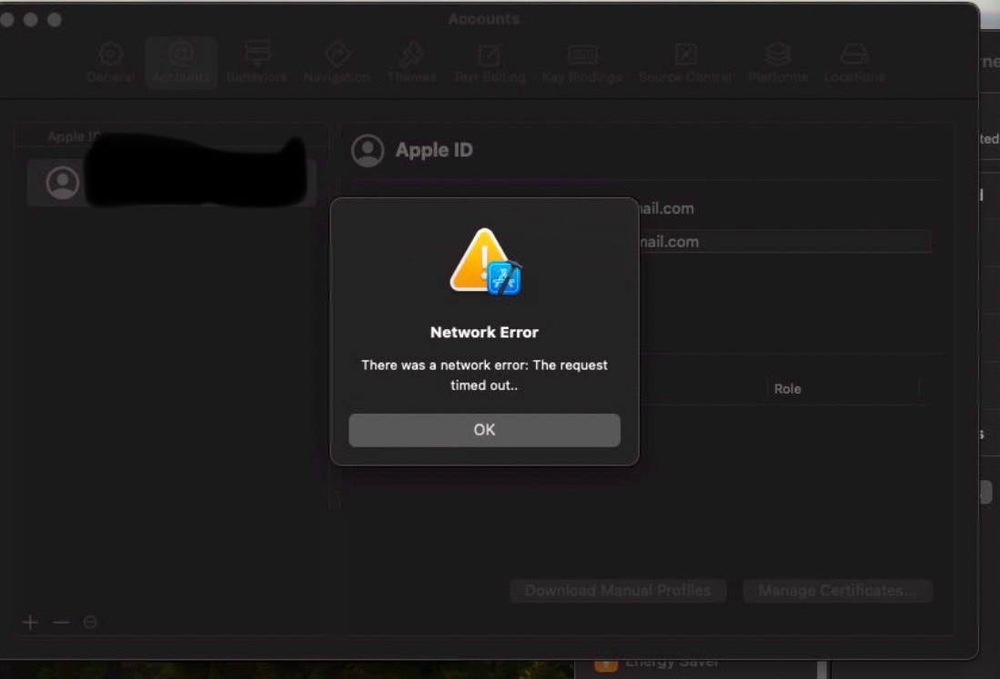 For xcode version 15.4 when login and waiting to return of the profile have error timeout