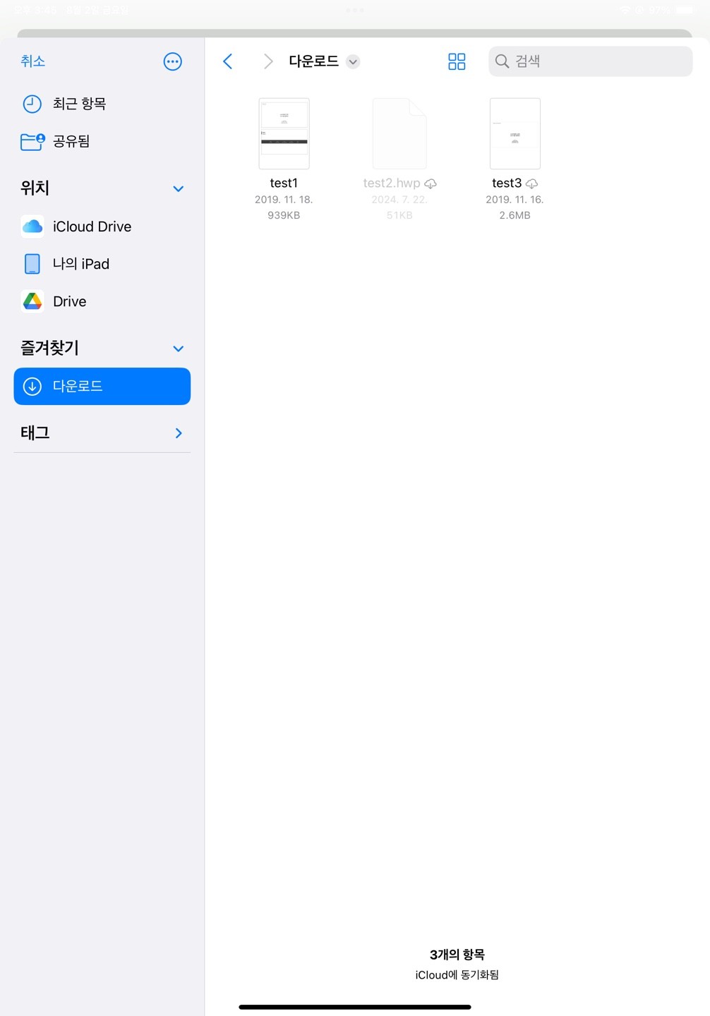 When opened on Mac. Acceptance of files with the '.hwp' extension is applied. But not on ipad