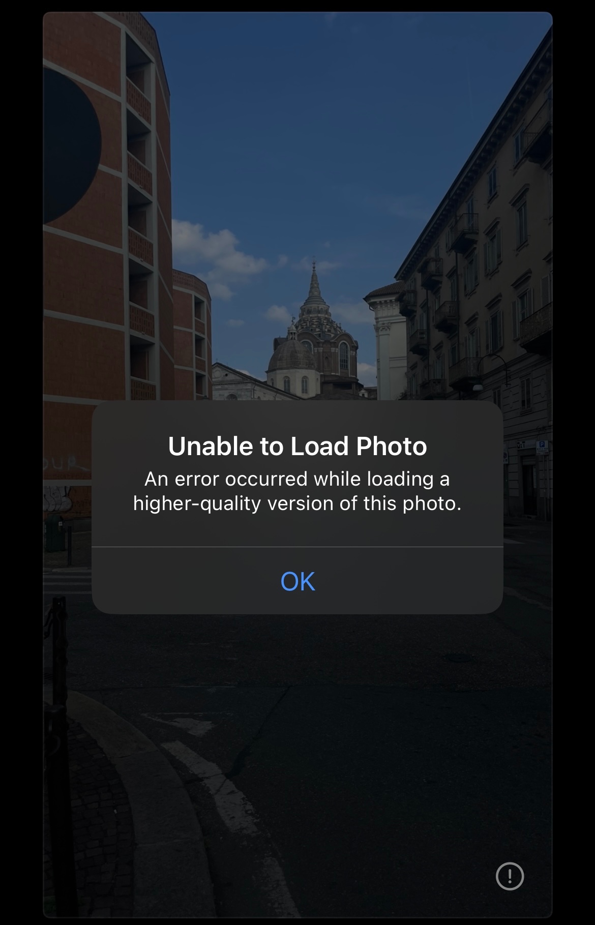 • Cannot Load Photo. There was an error loading this photo. • Unable to Share. There was an error while preparing to share. Please try again later. • Unable to Load Photo. An error occurred while loading a higher-quality version of this photo.