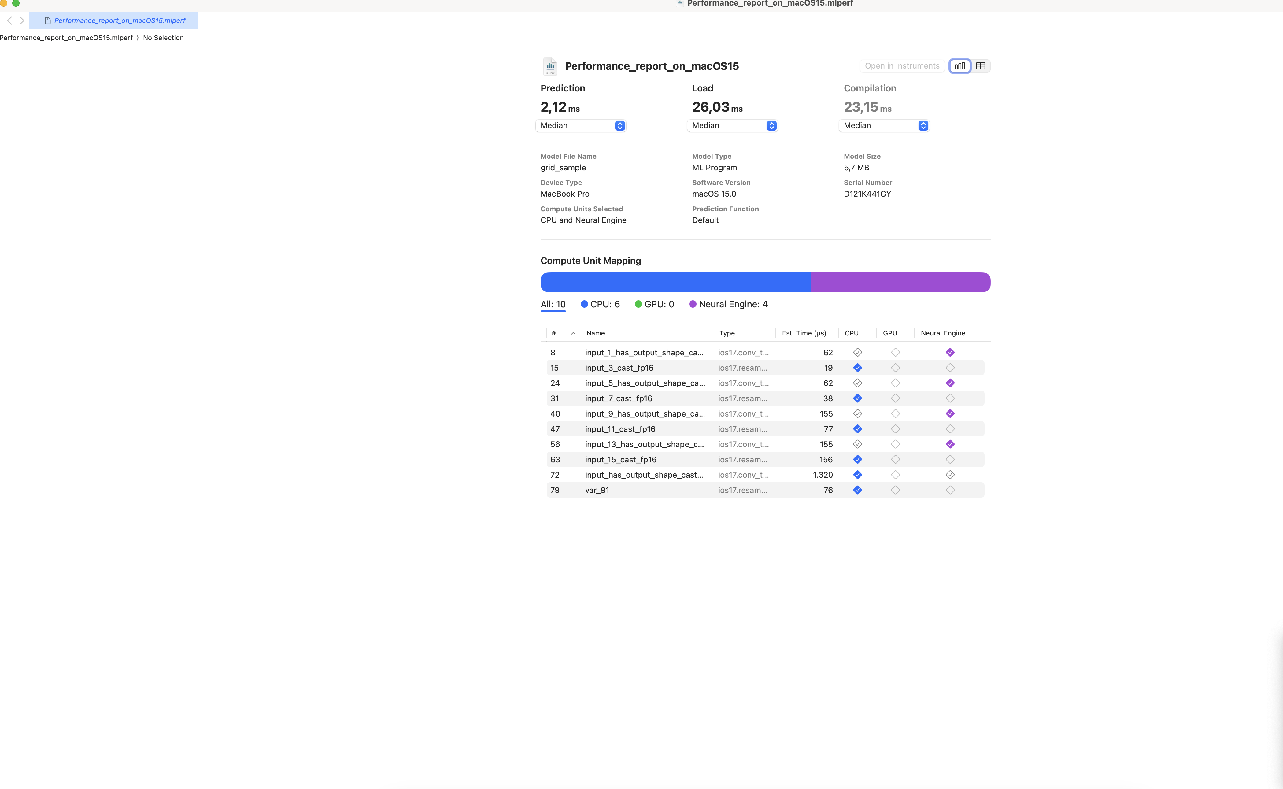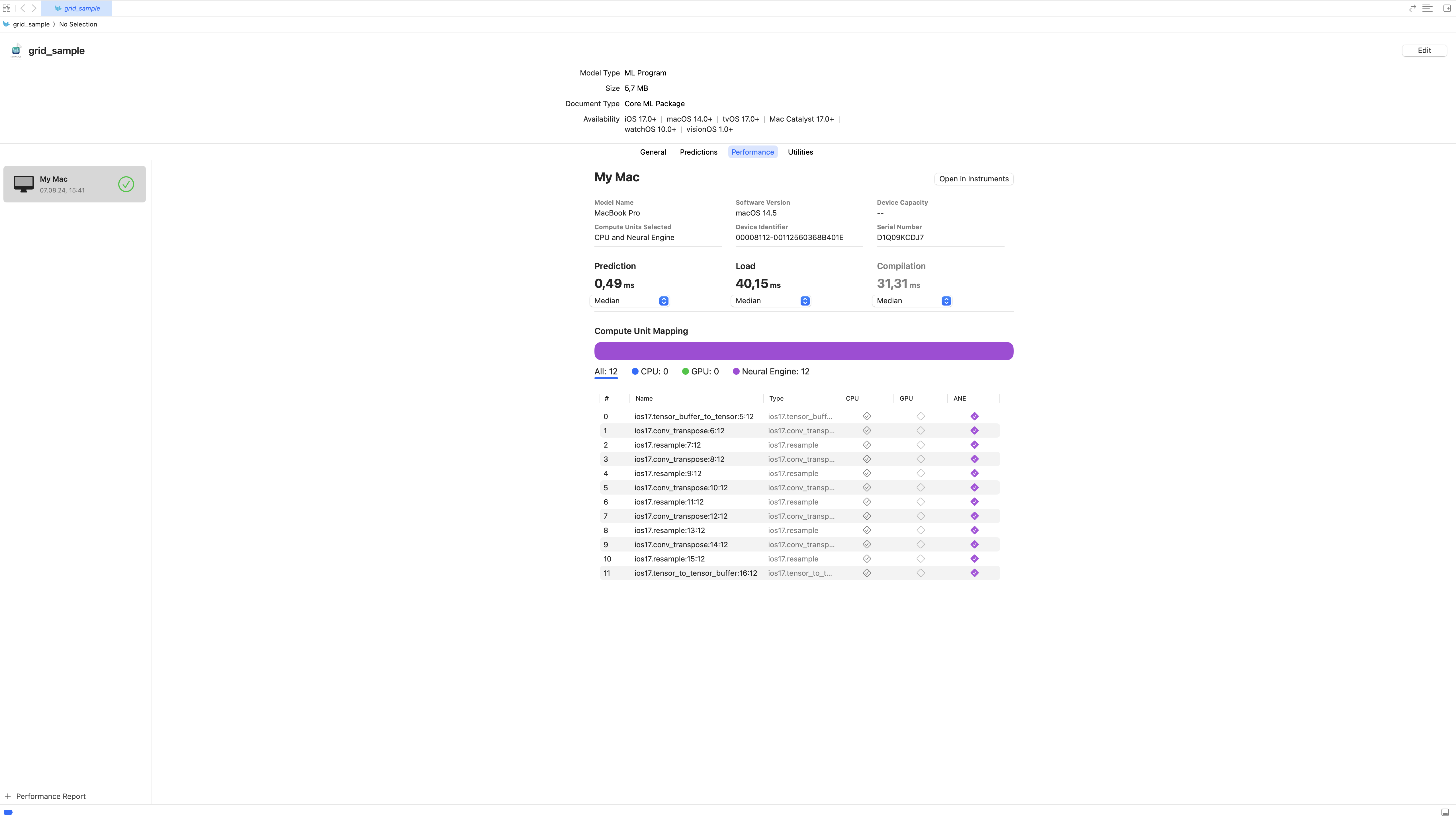In macOS 15 beta the gridsample function from PyTorch is not executing as expected on the Apple Neural Engine in MacBook Pro M2.