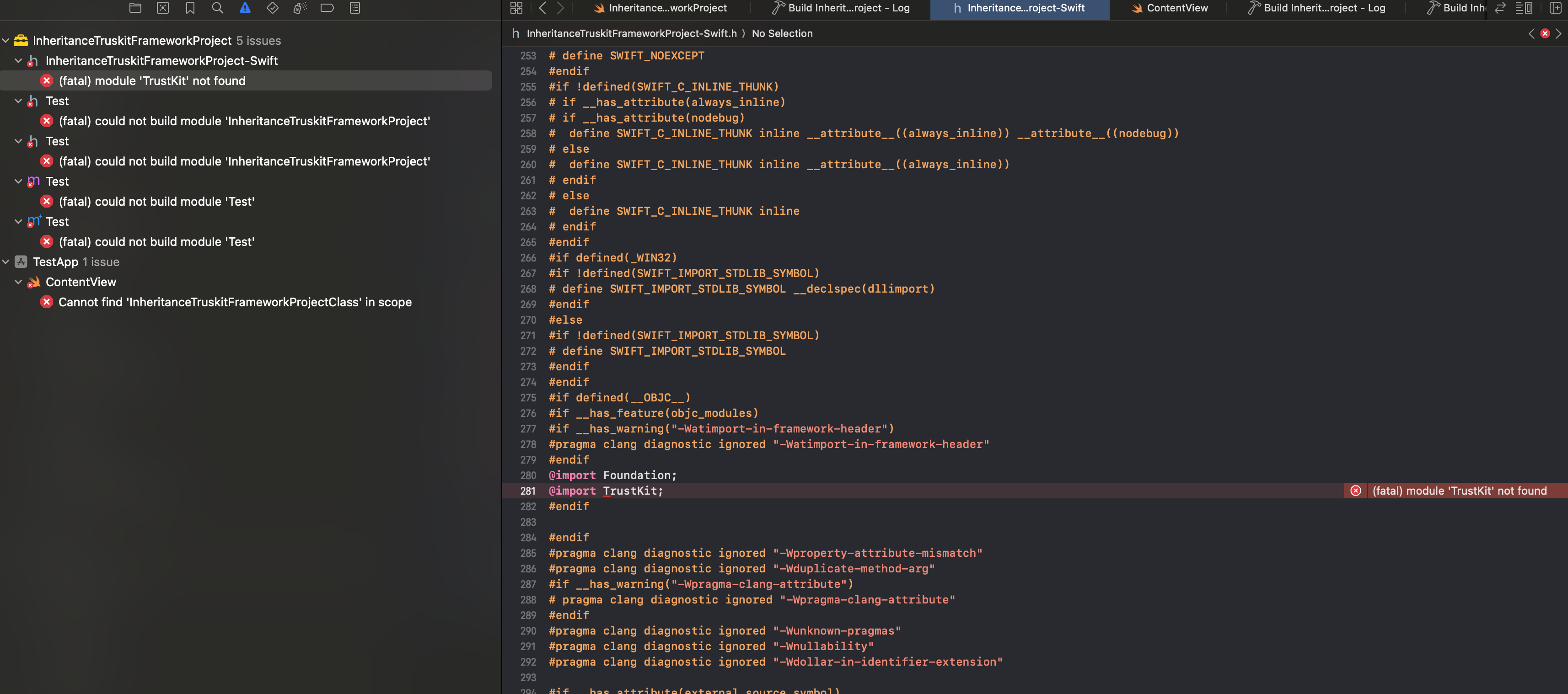 Error while building the framework in the auto-generated Swift header file (ProjectName-Swift.h)