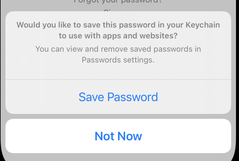 Dialog: "Would you to save this password in your Keychain to use with apps and websites"