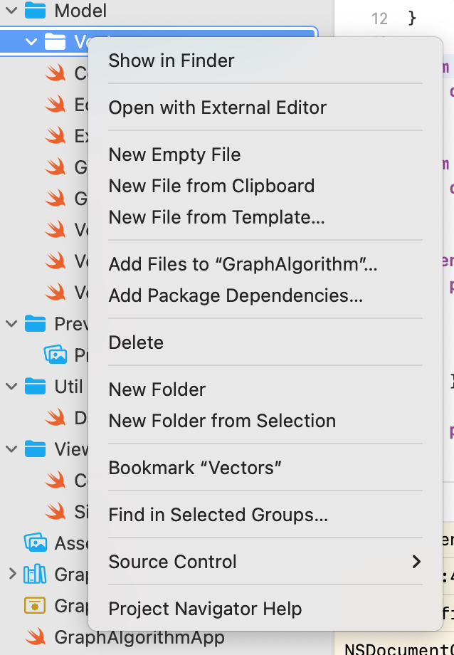 - Right-click or Control-click in the desired location within the Project Navigator, where you want to add the new file group (e.g., under your project’s root or a specific target).