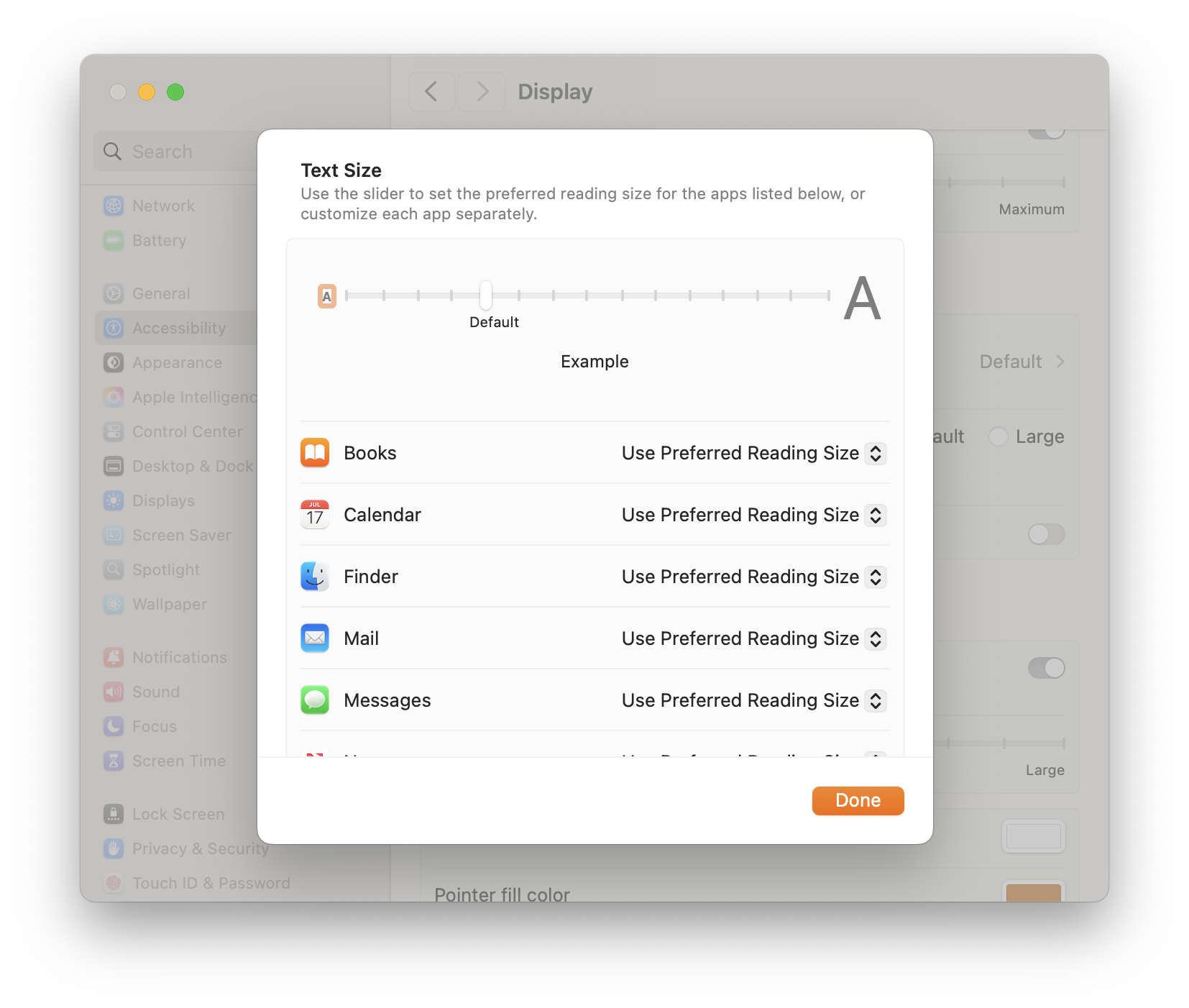 macOS 15 includes a neat section in System Preferences Settings to change the dynamic text size, as outlined see: https://support.apple.com/guide/mac-help/make-text-and-icons-bigger-mchld786f2cd/mac
