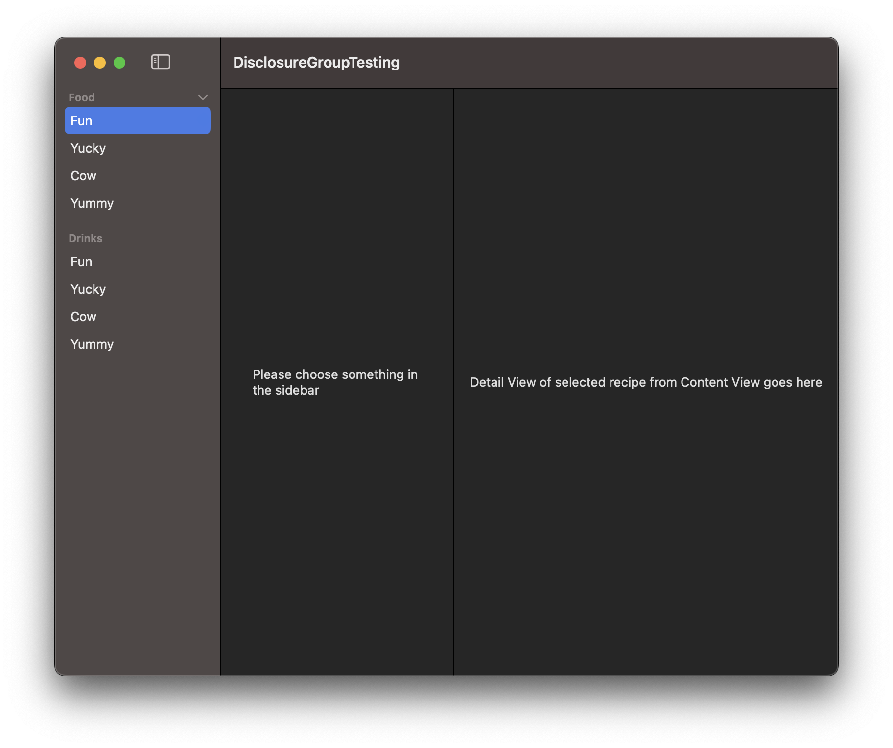 I'm trying to implement a 3 column NavigationSplitView in SwiftUI on macOS - very similar to Apple's own NavigationCookbook sample app - with the slight addition of multiple sections in the sidebar similar to how the Apple Music App has multiple sections in the sidebar.
