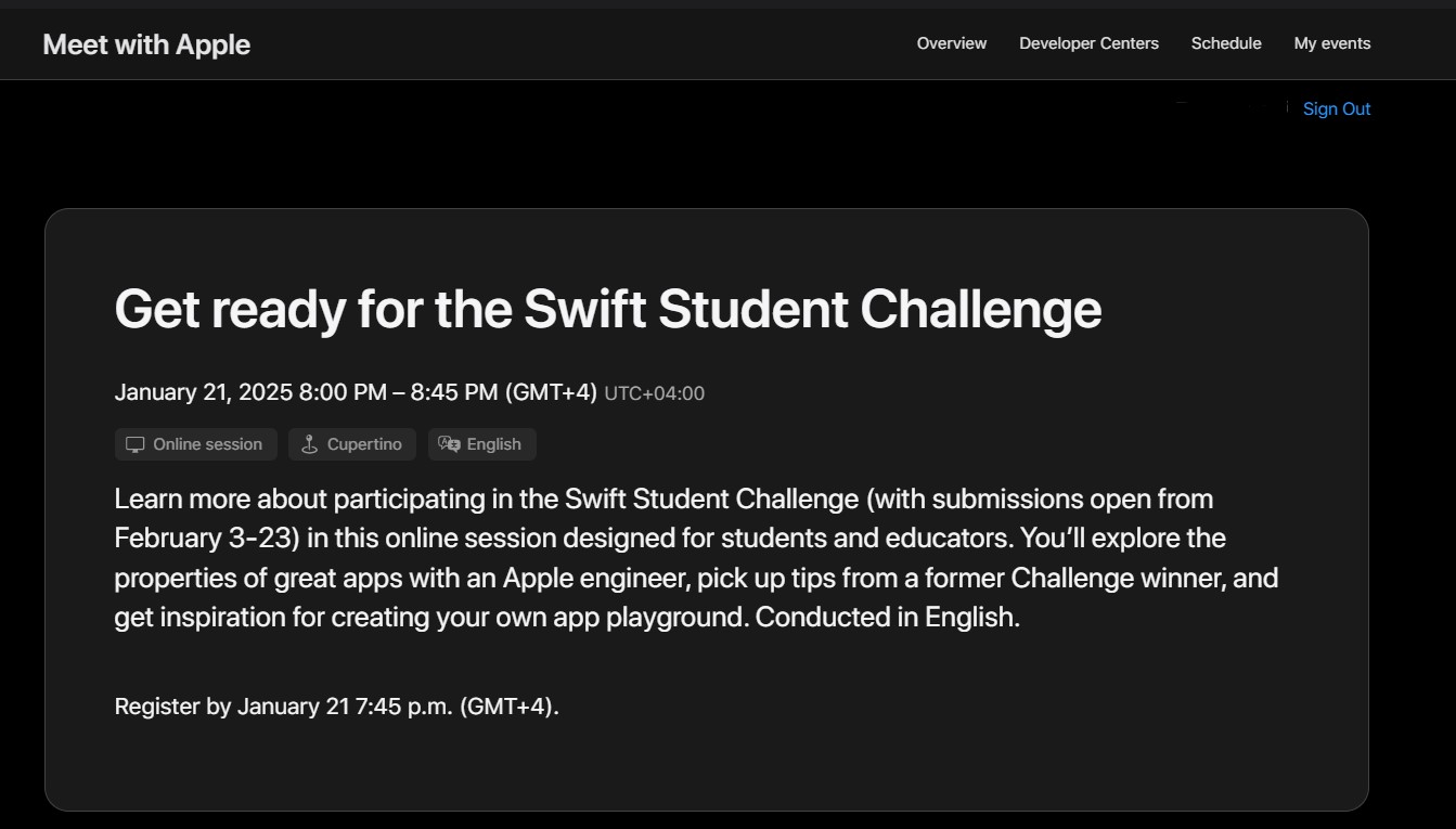 Unable to register for Swift Student Challenge Meet with Apple Session