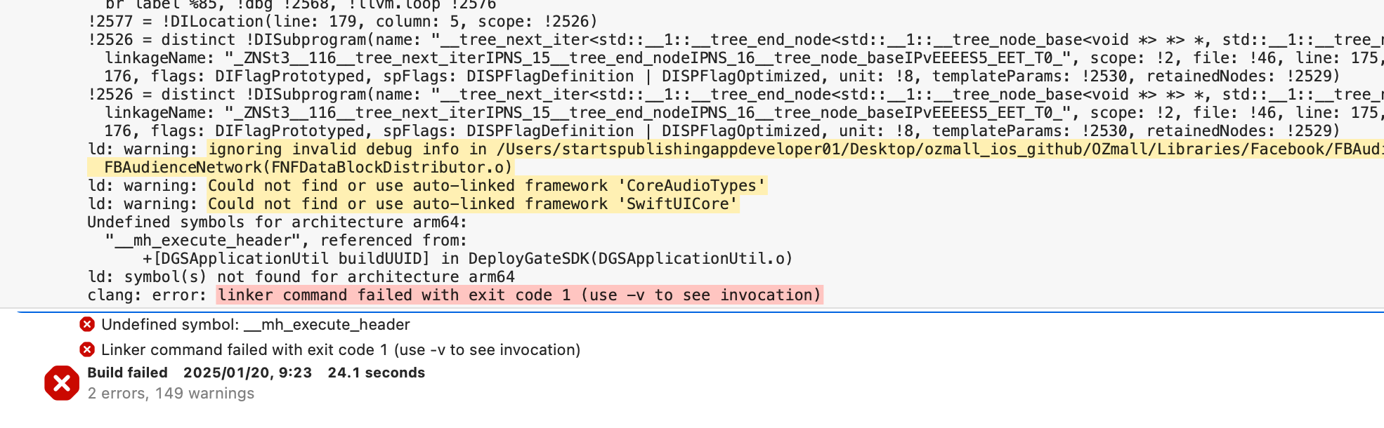 After updating from Xcode 15.4 to Xcode 16.2, I am unable to build my project. I would greatly appreciate any advice or guidance on how to resolve this issue.