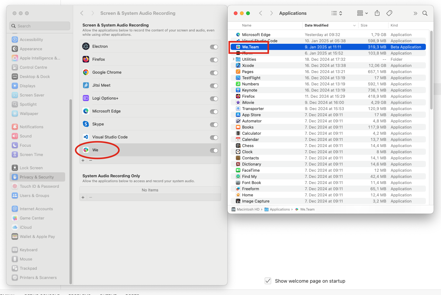 In System Settings > Privacy & Security > Screen & System Audio Recording it appears as We