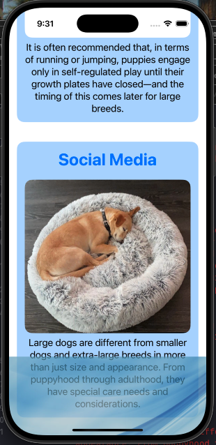I want to add an event list to my CardView app but the appearance is all wrong. See image. The blue swirl at bottom is all of my List that appears.