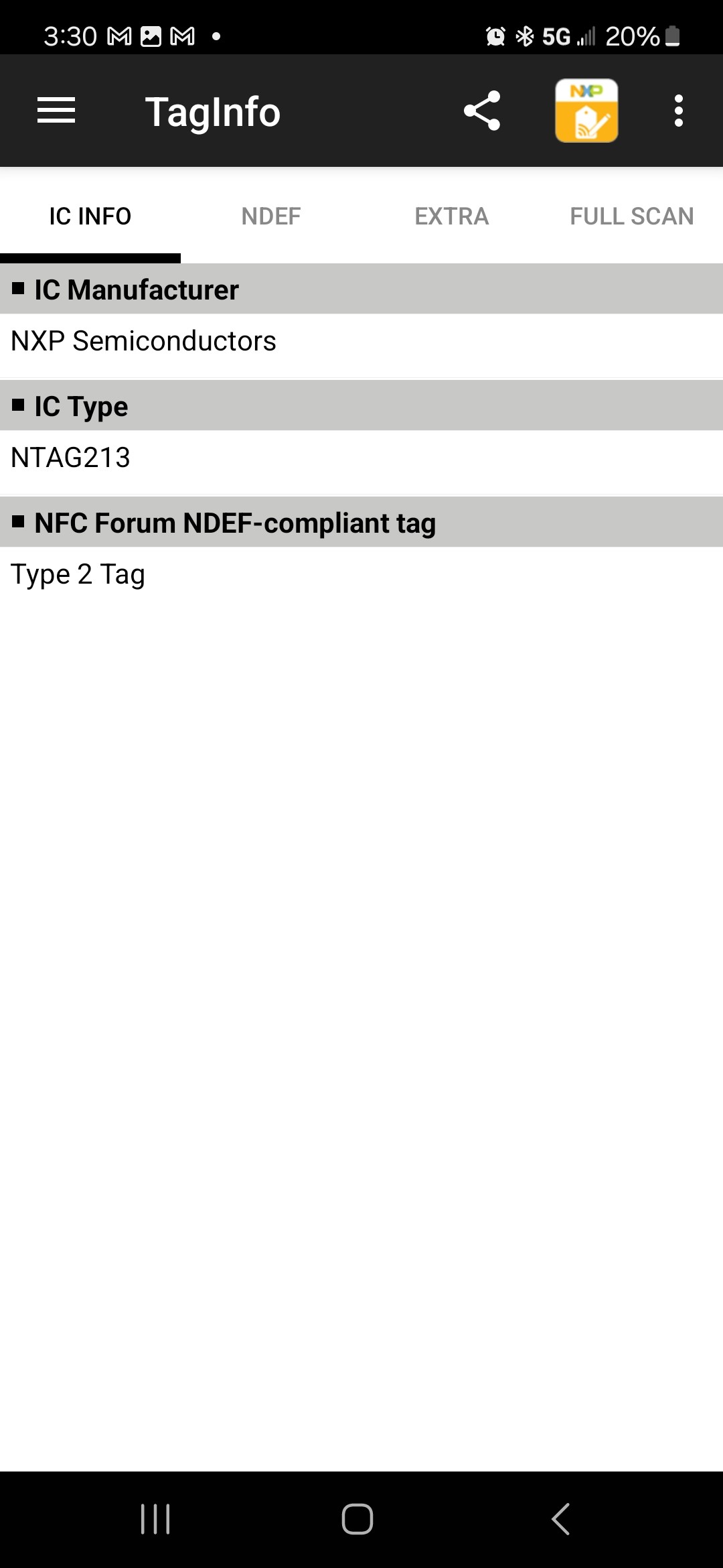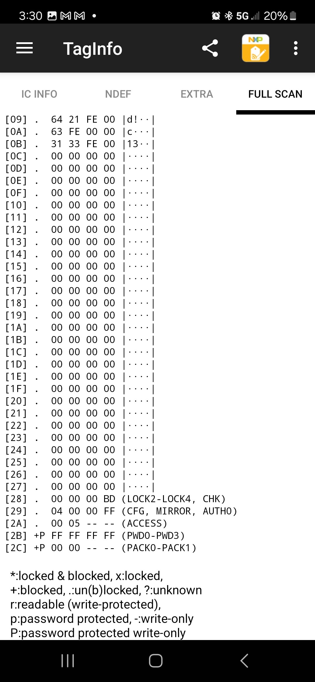 The NXP NTAG213 returns more information than the RF430, but the NDEF data is the same.