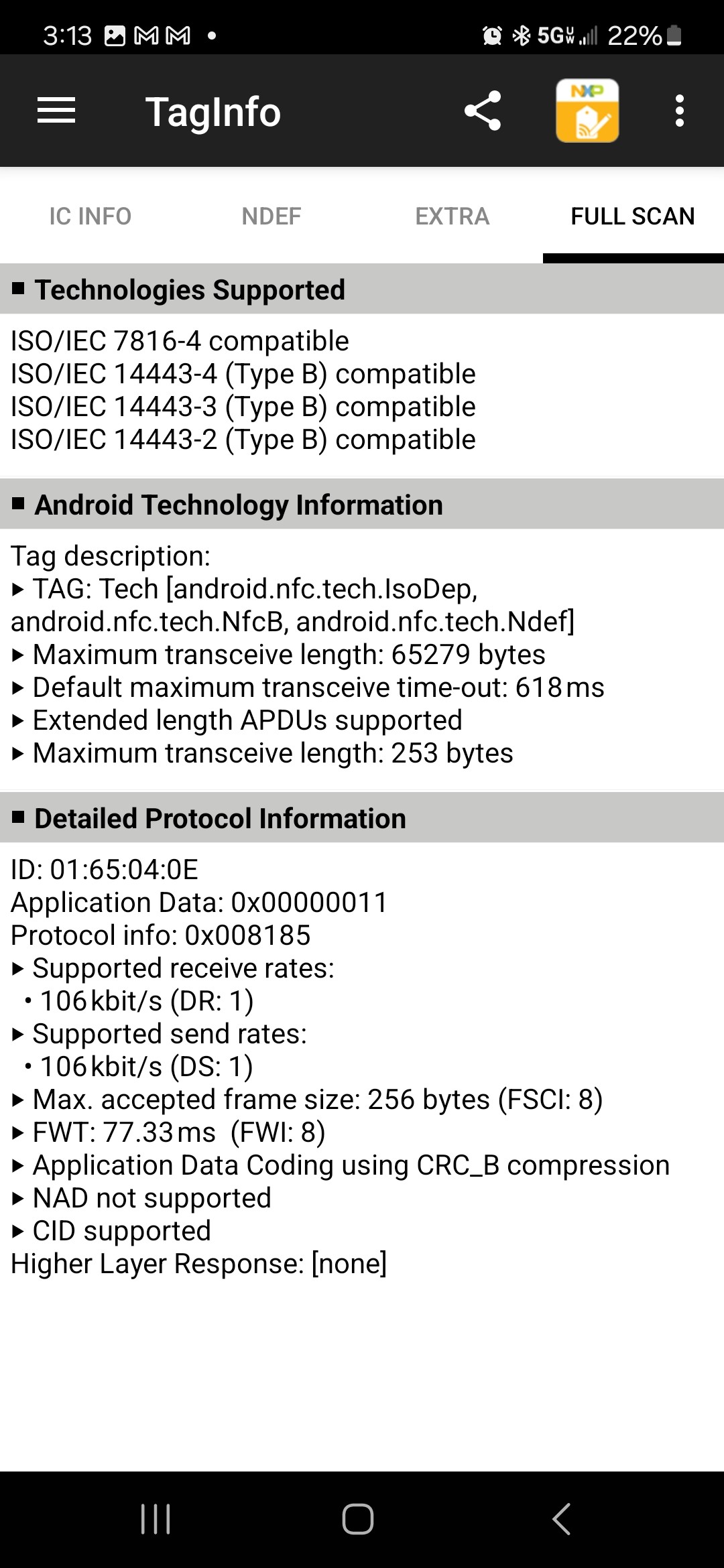 - Tag Selection (0xD2, 0x76, 0x00, 0x00, 0x85, 0x01, 0x01)